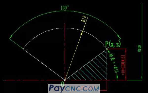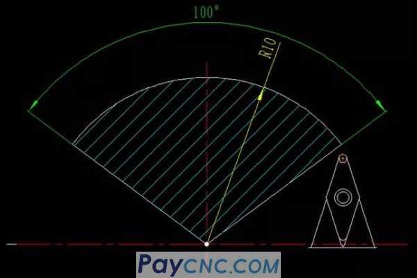 The following diagram: Machining a circular arc thread with a radius of R10 and a radian of 100 degrees.