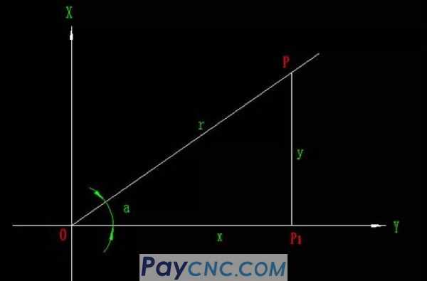 In the right triangle OPP1, the ratio between the opposite side y of the angle a, the adjacent side x and the hypotenuse r defines the trigonometric function of the angle a. There are three commonly used mathematical formulas as follows: