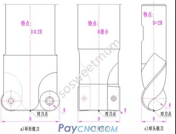 The ball-end milling cutter can be regarded as an annular milling cutter with a turning radius twice the blade radius.