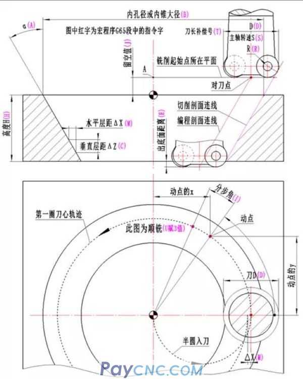 As long as the inner cylindrical surface and inner conical surface are milled, they can be processed by this general macro program.