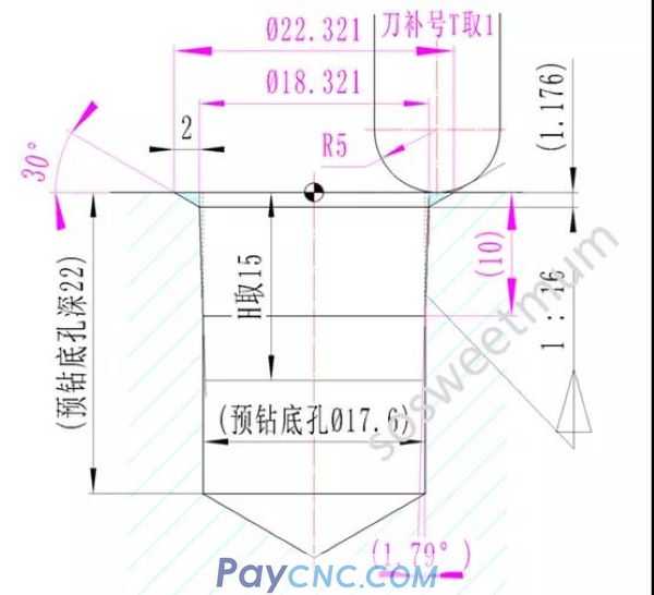 The inner cylindrical surface can be regarded as an inner conical surface with a cone angle of zero degrees, so the processing of the inner conical surface can cover the processing of the inner cylindrical surface. (Set an angle variable only)