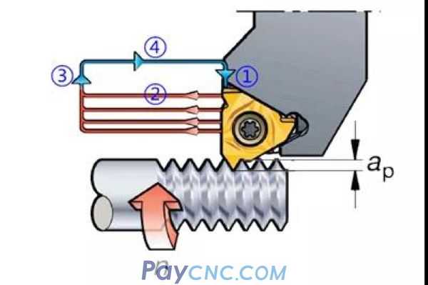 ① Cut in—②Thread cutting—③Retract tool—④Return