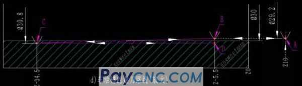 N15 X29.2Z-5.5; (Another circle slant out and return to point B)
