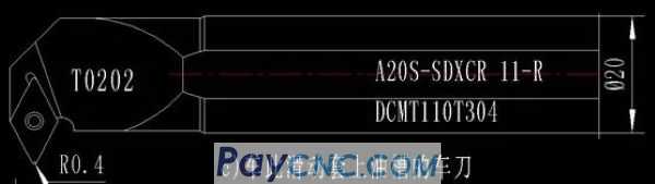 The oil groove of this workpiece has a radius of R0.4mm and a depth of 0.4mm, so one or two tool heads can be similar to the turning tool shown in the figure below.