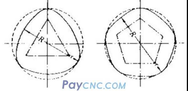 Set a circle inscribed with the measured circle at 3 points on the measured circle, take this circle as the center, and then make a circle circumscribed with the measured circle. The radius difference between the two circles is the roundness.