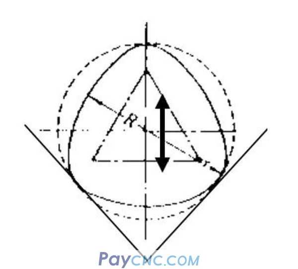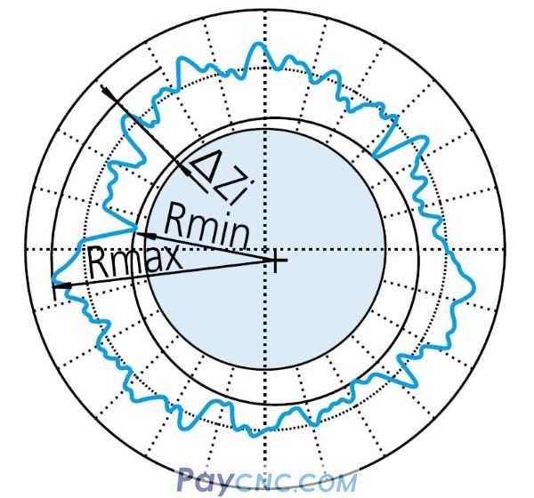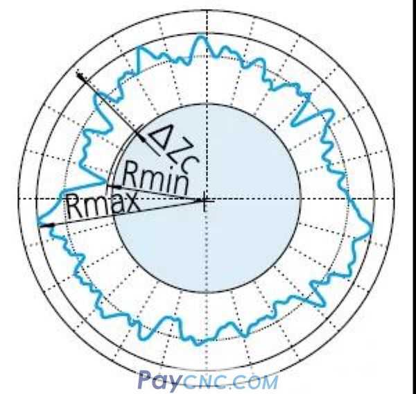 The radius method uses the difference between the maximum radius value and the minimum radius value obtained by one revolution of the workpiece to evaluate the roundness.