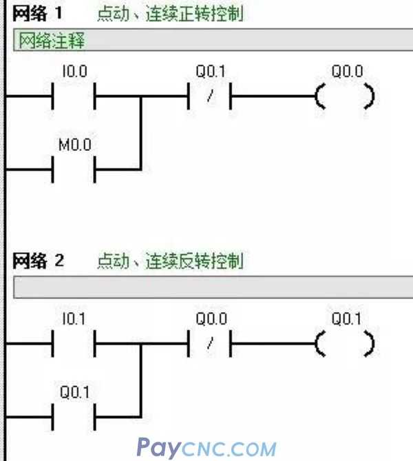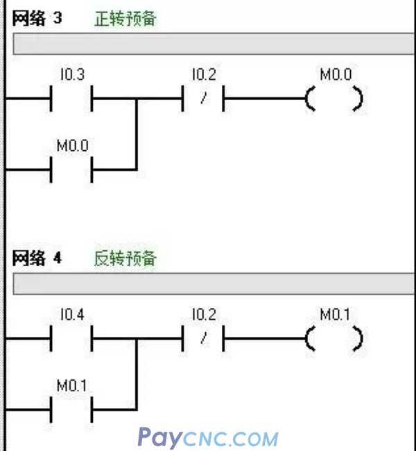 The control requirements of the material carrier are both a bit moving and continuous forward and reverse control functions. After the intermediate relay is used for state conversion, it is easy to achieve the requirements. As shown in Figure 3, network 1 and network 3 realize both jog and It can continuously control forward rotation, and network 2 and network 4 realize both jog and continuous reverse rotation control.
