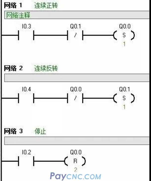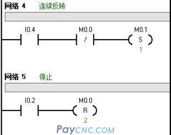 Programming with the set position reset instruction can also realize the continuous control of the motor, and its running program is shown in Figure 4 (1).