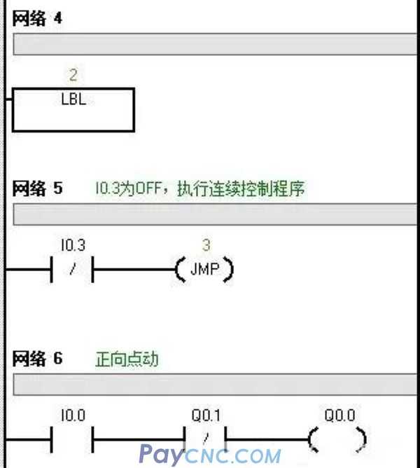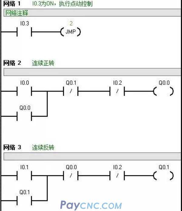 The electrical schematic diagram can be slightly modified on the basis of Figure 1. The input signal uses fewer buttons, and the electrical schematic diagram will not be redrawn here. In the program I0.3 assumes that the connection is inching and the disconnection is continuous, and the control program As shown in Figure 5.