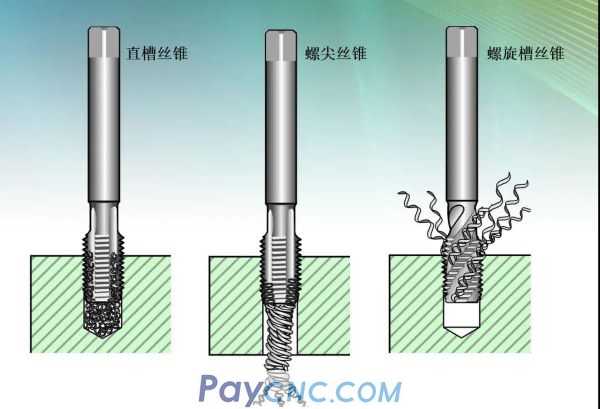 2) Spiral flute tap: used for blind hole machining with a hole depth less than or equal to 3D, iron filings are discharged along the spiral flute, and the thread surface quality is high.
