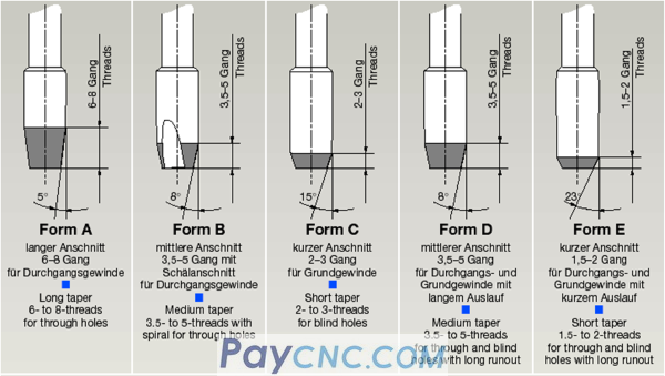 28~40° helix angle tap can process thread depth less than or equal to 3D;