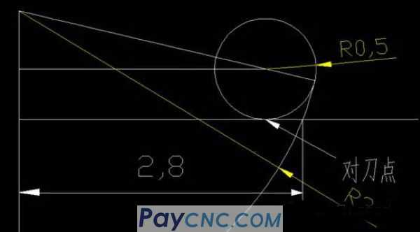 Looking at the first picture, the starting point of R3 is Z2.69, so here I am taking Z2.8, then where is the real starting point of the tool tip, as shown in the figure above, if there is a drawing software such as CAD, it can be directly measured , If not, you can count it like this #1=SQRT[25*25-[SQRT[9-2.8*2.8-0.5]²]=2.433 Macro operation does five more operations. This is an example. This solves the program :