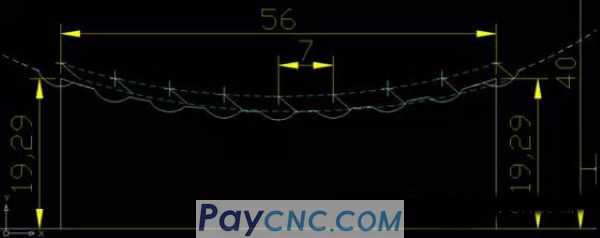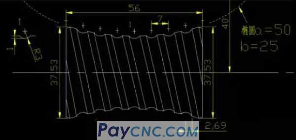 Looking at the center of the tool tip, the trajectory is also the elliptical trajectory. Any point on the tool tip is the elliptical trajectory, so just locate the starting point and use the incremental value to do it. The effective length of the ellipse is 56, and the pitch is 7,
