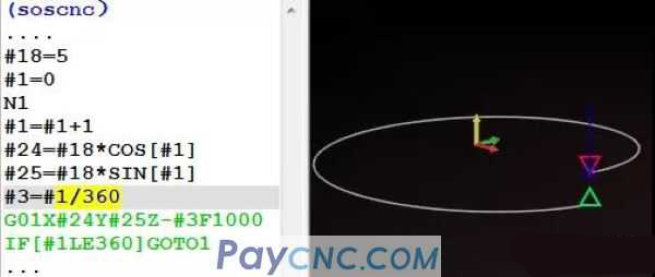 #1 self-increment, the range of 0~360 will be a whole circle, so the process of #1 self-increment will also gradually change the value in the Z direction. If I assign the value of #1 directly to #3, that is: #3=#1