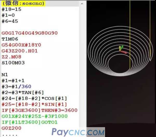 But the three-axis linkage spiral interpolation milling cone, as Z decreases, the radius (#18) will also change