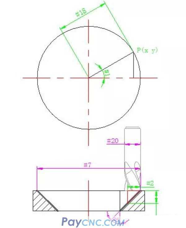 According to the size of the chamfer, the diameter of the tool, and the size of the taper to be processed, assign values to #7, #20, and #6 respectively.