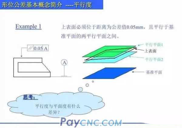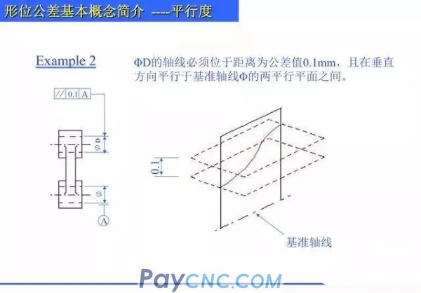It indicates that the actual elements of the part being measured are kept equidistant from the reference. When a direction is given, the tolerance zone is the area between two parallel planes whose distance is the tolerance value t and parallel to the reference plane (or straight line or axis); when two directions perpendicular to each other are given, it is a normal section The size is the tolerance value t1Xt2, and the area within the quadrangular prism parallel to the reference axis.