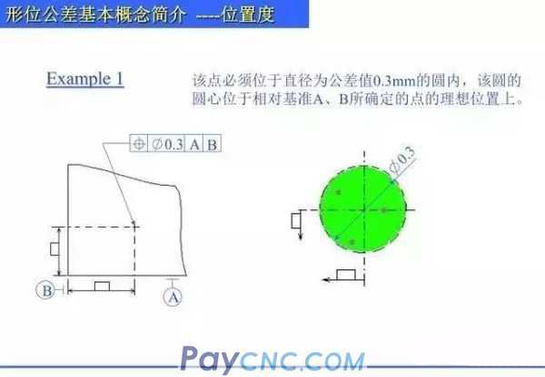 1. The position of the point: the tolerance zone is the area within a circle or sphere whose diameter is the tolerance t and the ideal position of the point is the center.