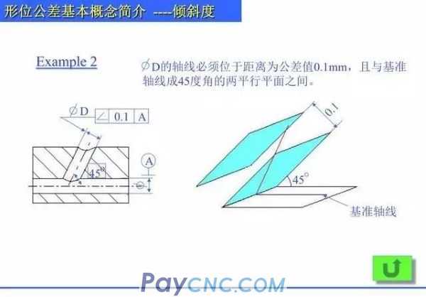 It means that the relative direction of the two elements on the part maintains the correct condition at any given angle. In a given direction, the tolerance zone is the area between two parallel planes (or straight lines) whose distance is the tolerance value t and is at a theoretically correct angle to the reference plane (or straight line or axis).
