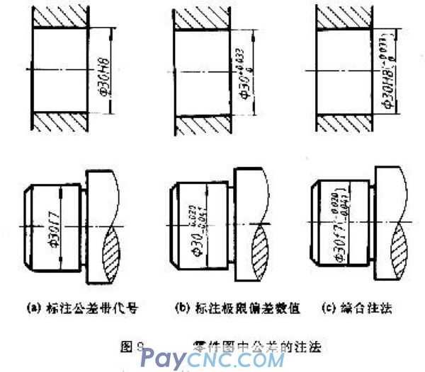 (3) Mark the limit deviation of the hole and shaft, as shown in Figure 8. This injection method is mainly used for non-standard coordination.