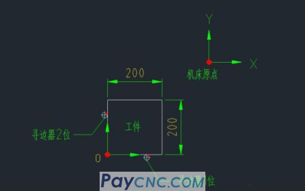 Example: Put a 200X200X30 workpiece clamping tool on the worktable of a vertical machining center. The tool setting requires the workpiece's O point as the origin, the workpiece coordinate system is established, and the relevant parameters are set.