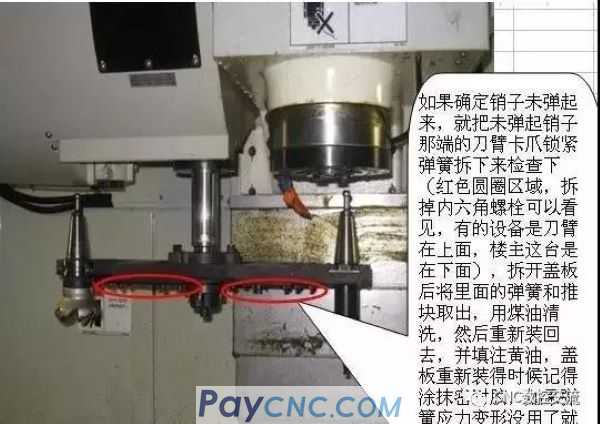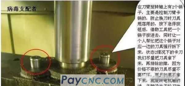1. Two people are required to coordinate the operation. One climbs to the equipment tool magazine and the other pays attention to the condition of the tool arm. There is a tool changer robot arm motor (a motor directly above the tool arm) on the tool magazine.
