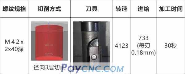D25.4 single-tooth single-edge milling cutter, processing M42x2x40 deep thread, smooth thread surface. Processing parameters are as follows.